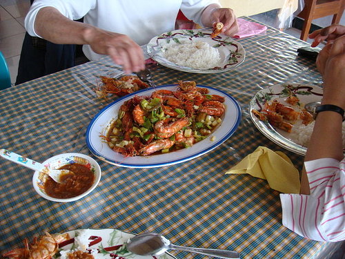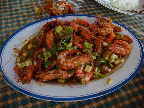 因為是早午餐,所以不能吃的太重口味,炒 一公斤 的大蝦子外加三盤白飯,簡單解決就好。