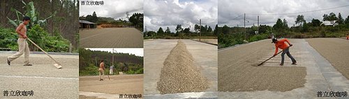 左圖的Agus(男工的名字)正在來回不停的撥動,就是要讓咖啡的乾度能更均勻