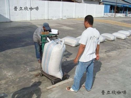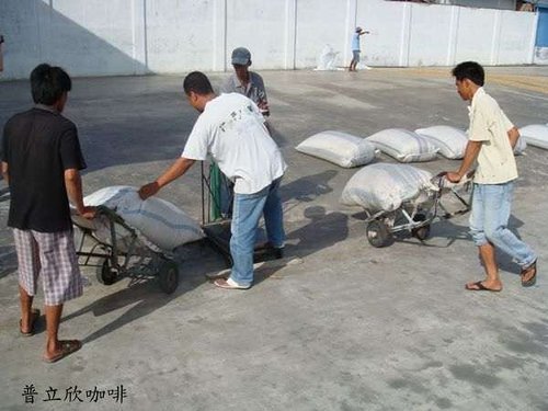 咖啡生豆卸貨後,先秤重每包做完重量紀錄後,就開始直接推至日曬場