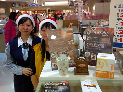 不過也因為這樣的關係,就在第三天,新光的老董竟然突然到展覽館去逛,給大家加油打氣,剛好喝到普立欣的咖啡,故事就這樣發生了~~
