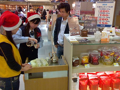 教導新光三越櫃位人員如何沖泡咖啡給客人試飲