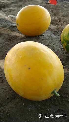 超大的金黃色的香瓜,幾乎像是假的一樣,在陽光下反射出光芒~