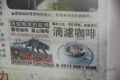 還有一些報紙對麝香貓咖啡的介紹,應該是他們自家被採訪的內容及廣告