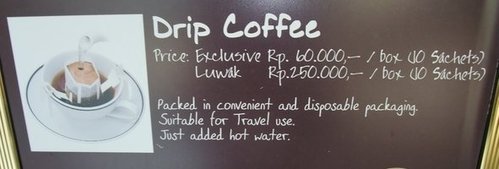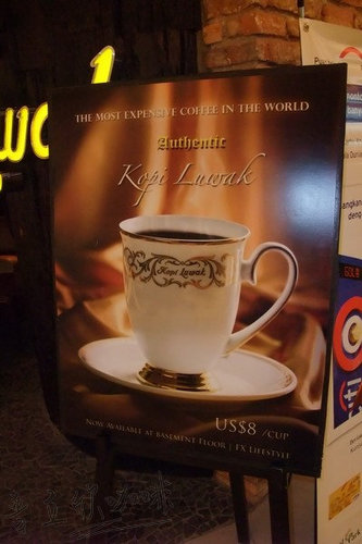單杯的麝香貓咖啡一杯要價 美金8元,並不算貴
