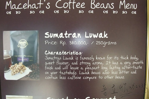 另外在蘇門達臘島的棉蘭市區也有一家專賣麝香貓咖啡的店 《Macehat》